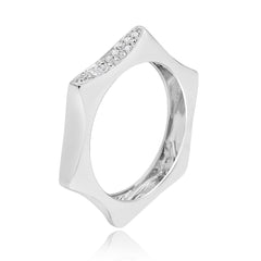 0.2 ct. Diamond 14K White Gold Hexagon Pave Pointed Wave Cuff Band