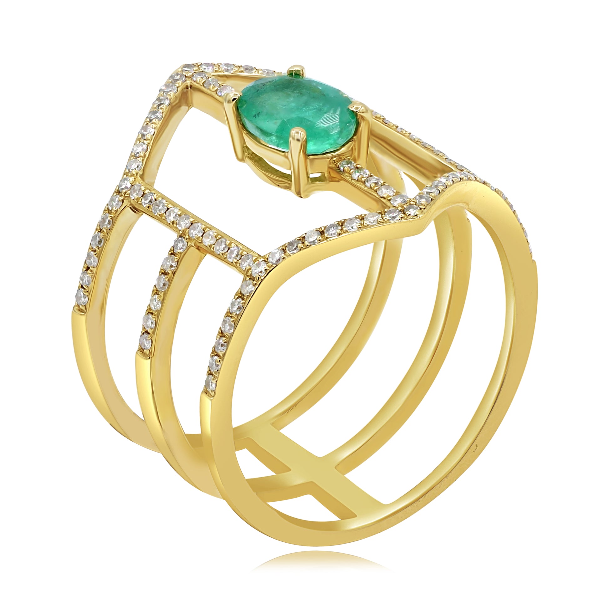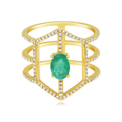 0.69 ct. Emerald & 0.34 ct. Diamond 14K Yellow Gold 3 Row Wide Ring