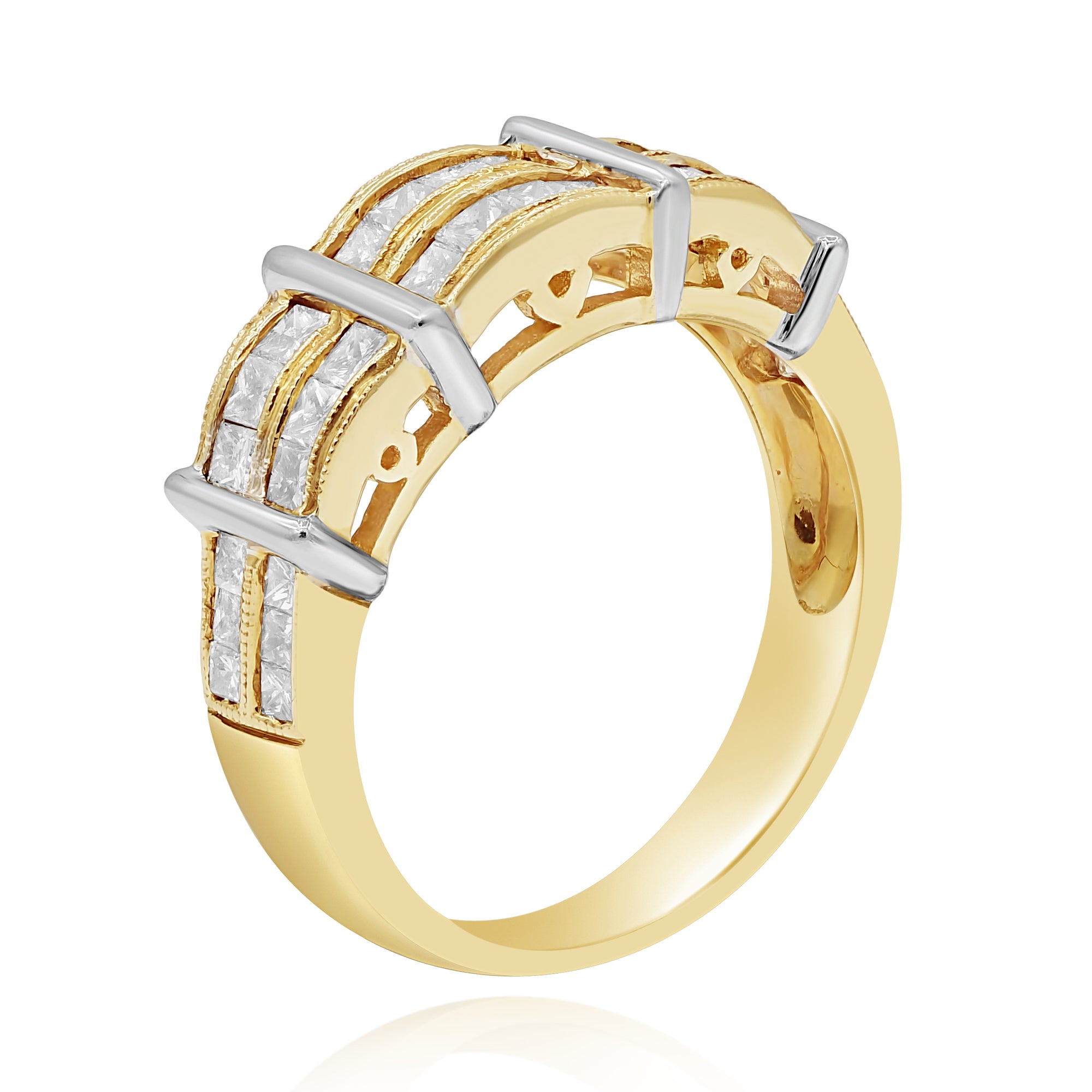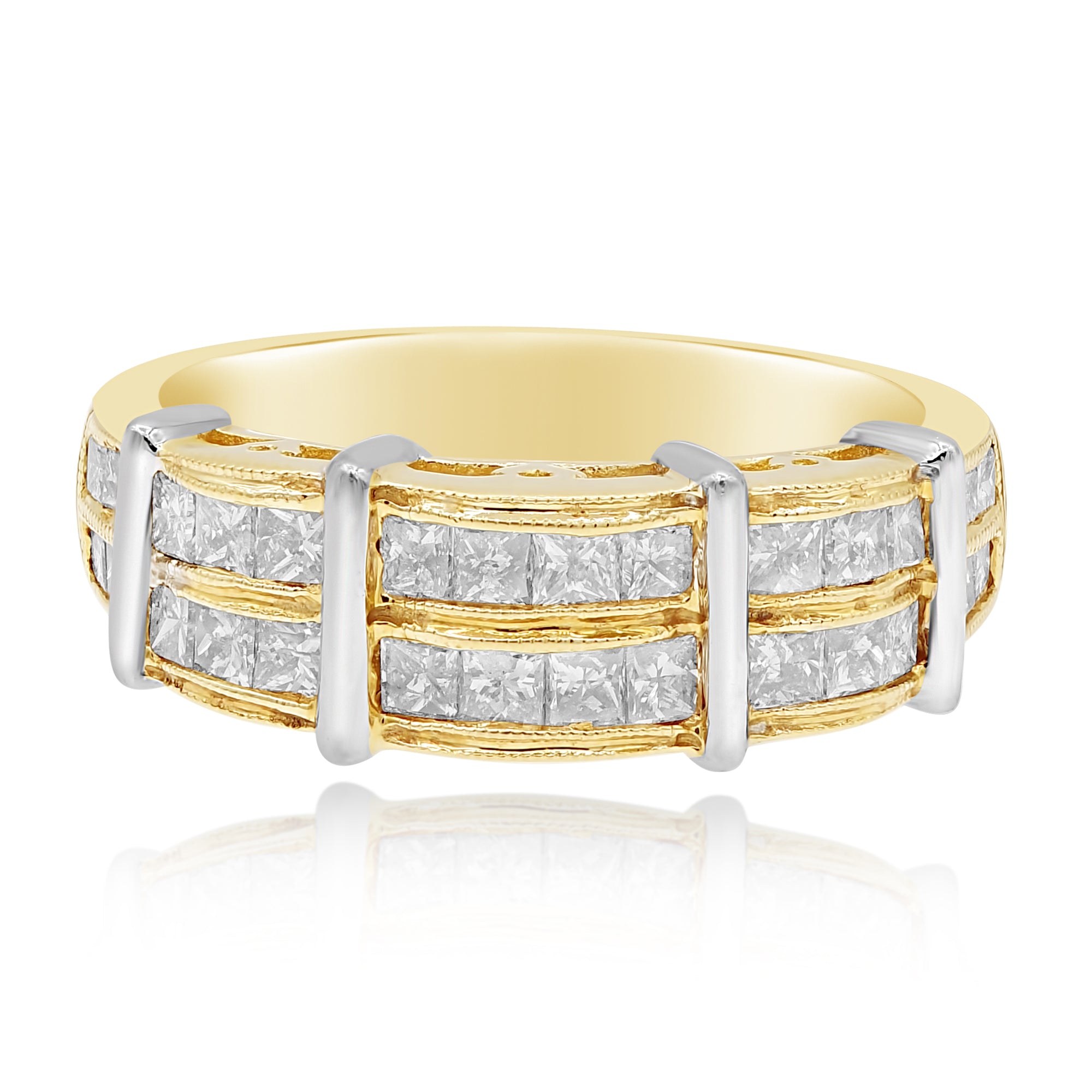 1.28 ct. Diamond 14K Two Tone Gold Double Row Vertical Bars Band