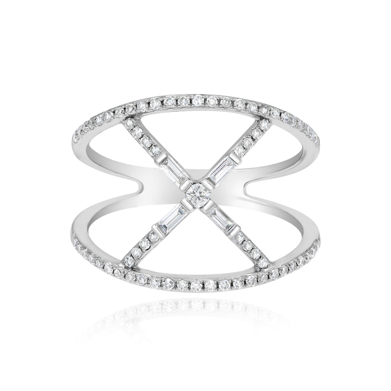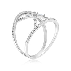 0.39 ct. Diamond 14K White Gold Pave Crossover Baguette Wide Ring