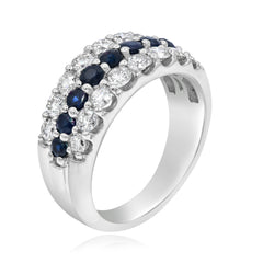 0.89 ct. Sapphire & 1.21 ct. Diamond 14K White Gold 3-Rows Band