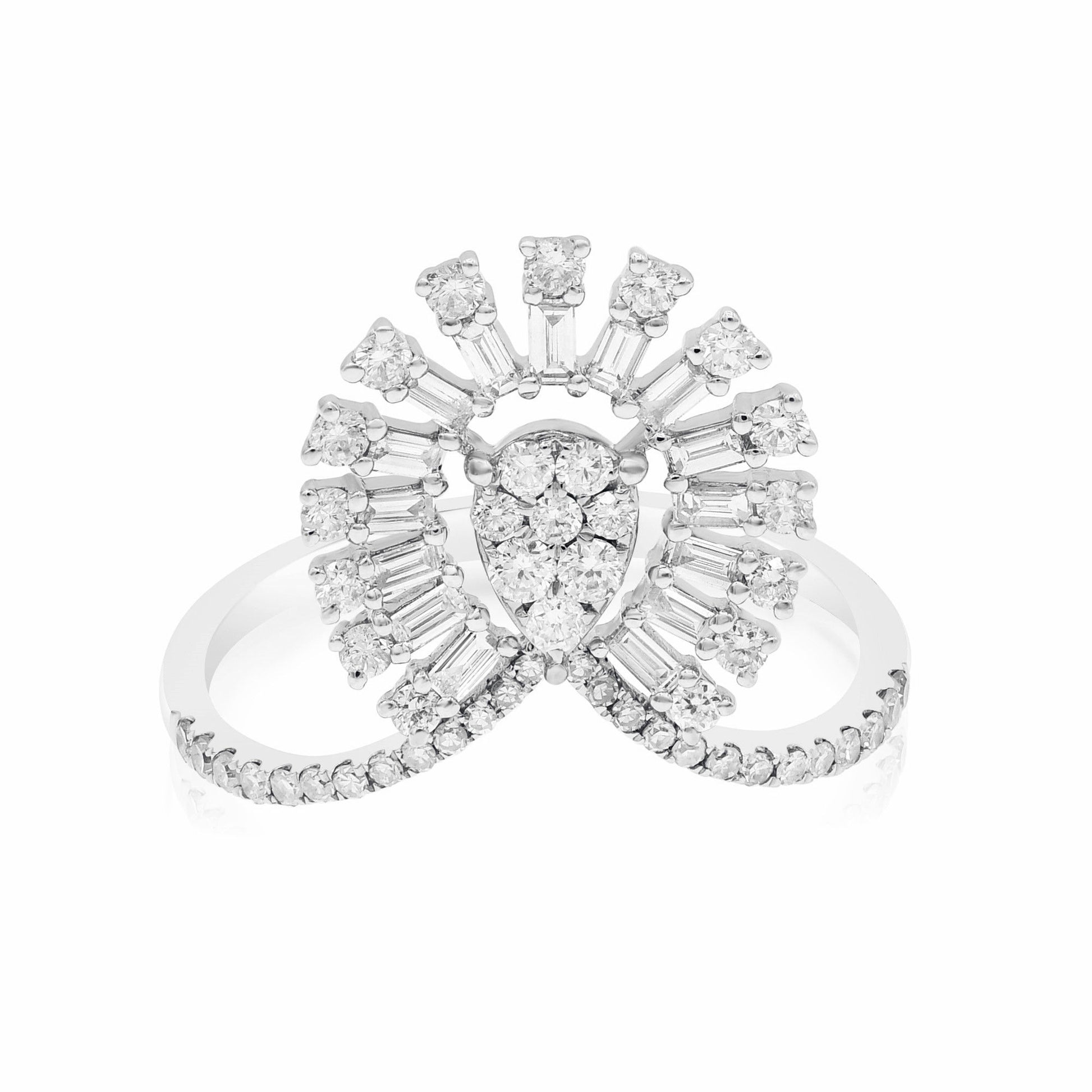 Gemstone 1: Diamond (Quantity: None, Shape & Cutting Style: Round Single Cut, Weight: 0.72 ct.) Gemstone 2: Diamond (Quantity: None, Shape & Cutting Style: Baguette, Weight: 0.72 ct.)R21377A