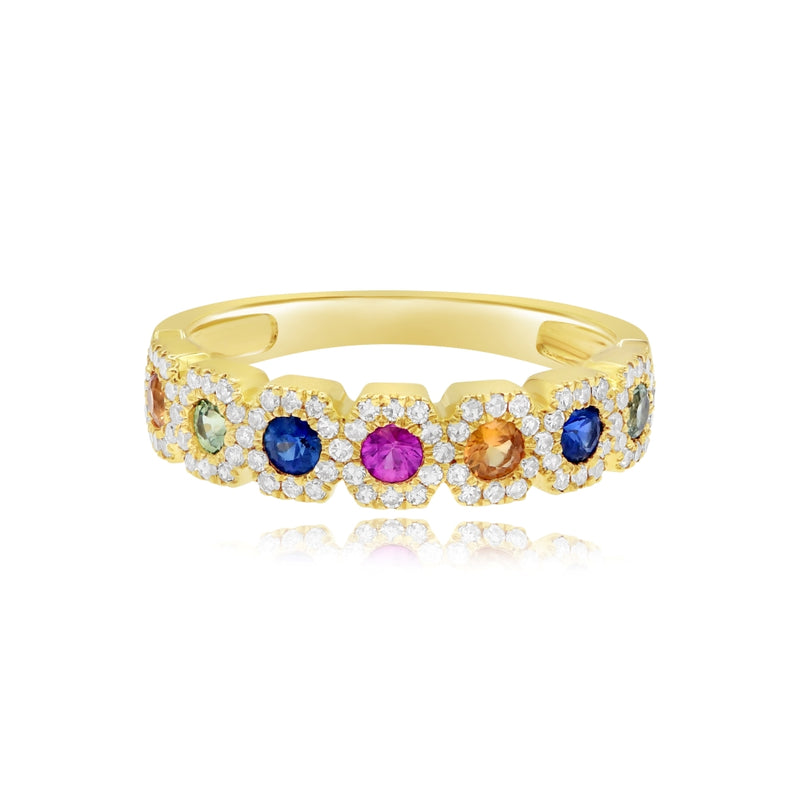0.57 ct. Multi-Color Sapphire & 0.29 ct. Diamond 14K Yellow Gold Hexagon Rainbow Band
