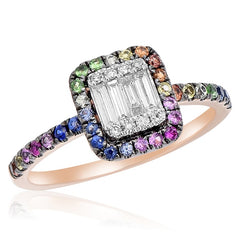 0.4 ct. Multi-Color Sapphire & 0.23 ct. Diamond 14K Rose Gold Illusion Halo Ring