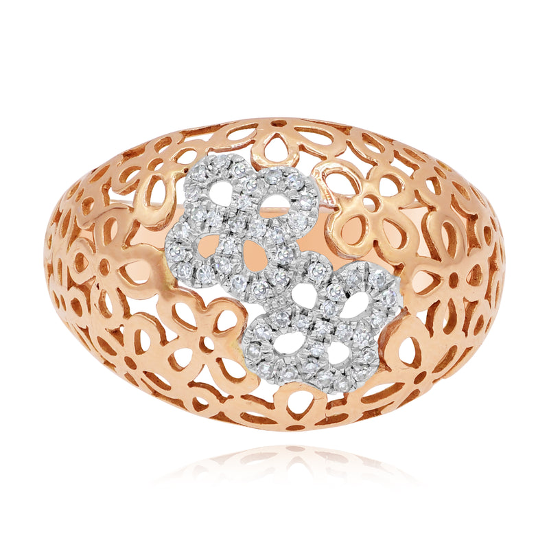 0.14 ct. Diamond 14K Rose Gold Floral Filgree 3D Dome Shape Ring