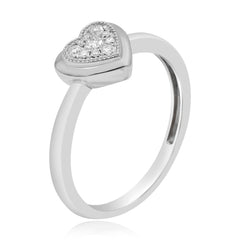 0.11 ct. Diamond 14K White Gold Micro Prong Setting Heart Cluster Ring