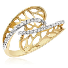 0.17 ct. Diamond 14K Two Tone Gold Mesh Cluster Wave Ring