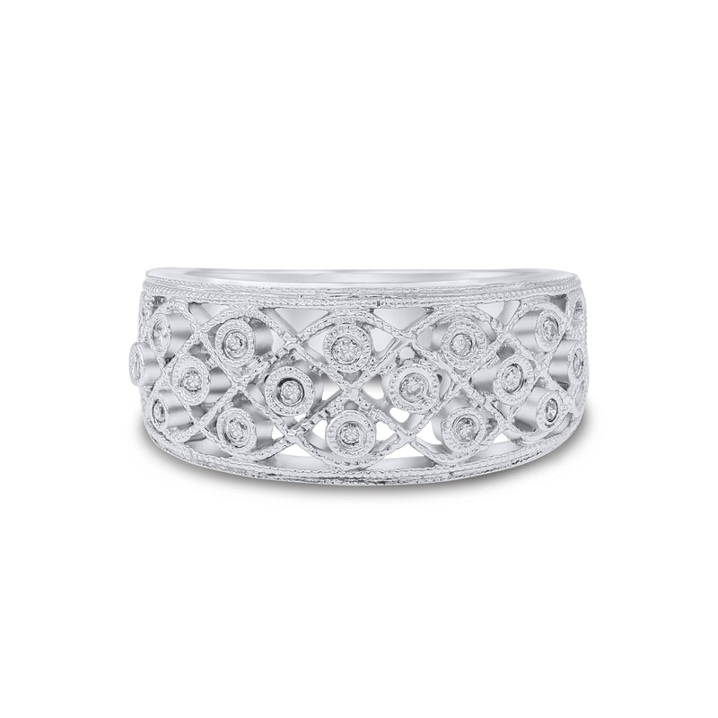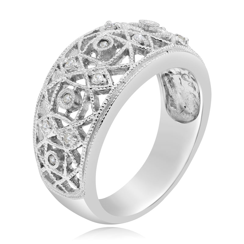 0.07 ct. Diamond 14K White Gold Openwork Wide Filigree Ring