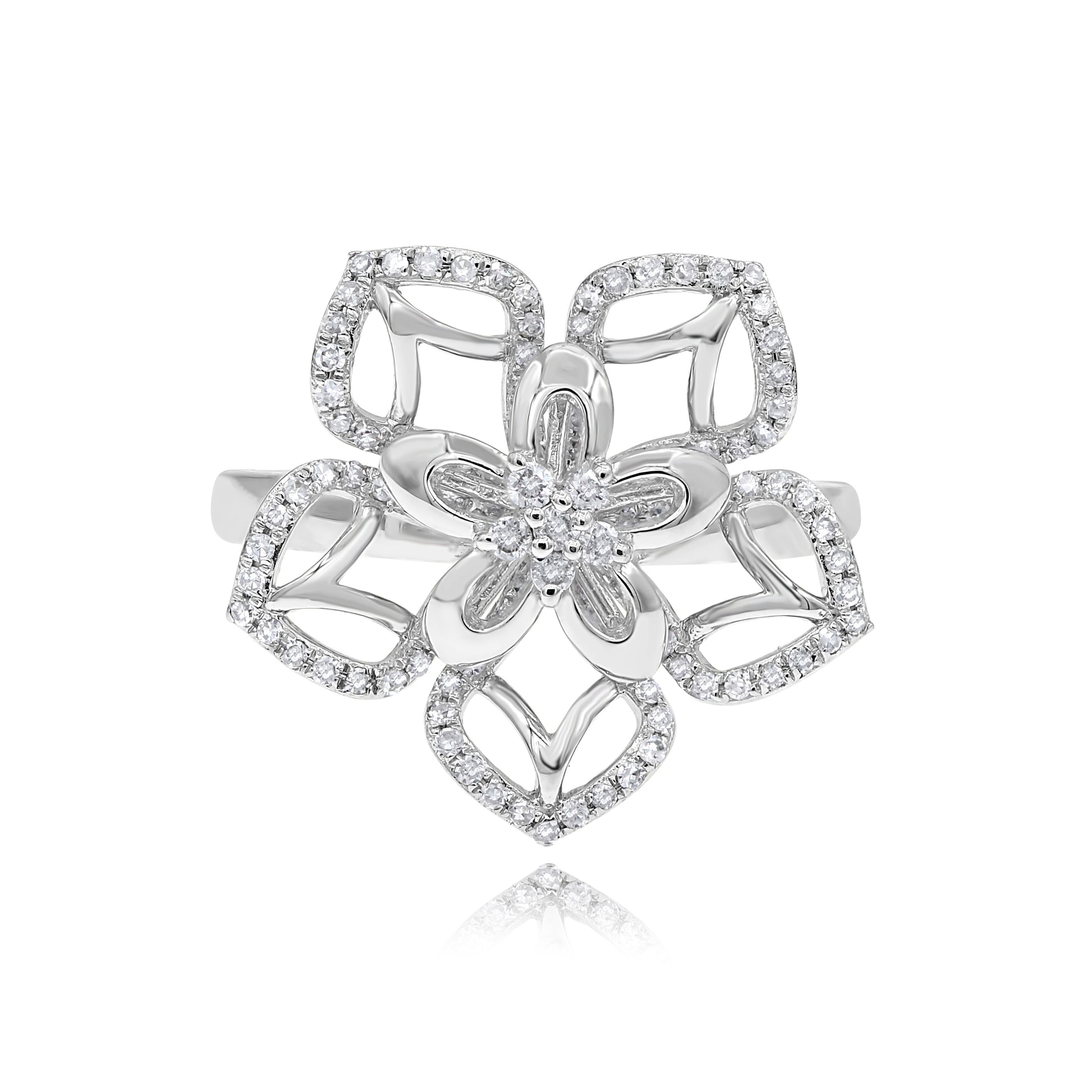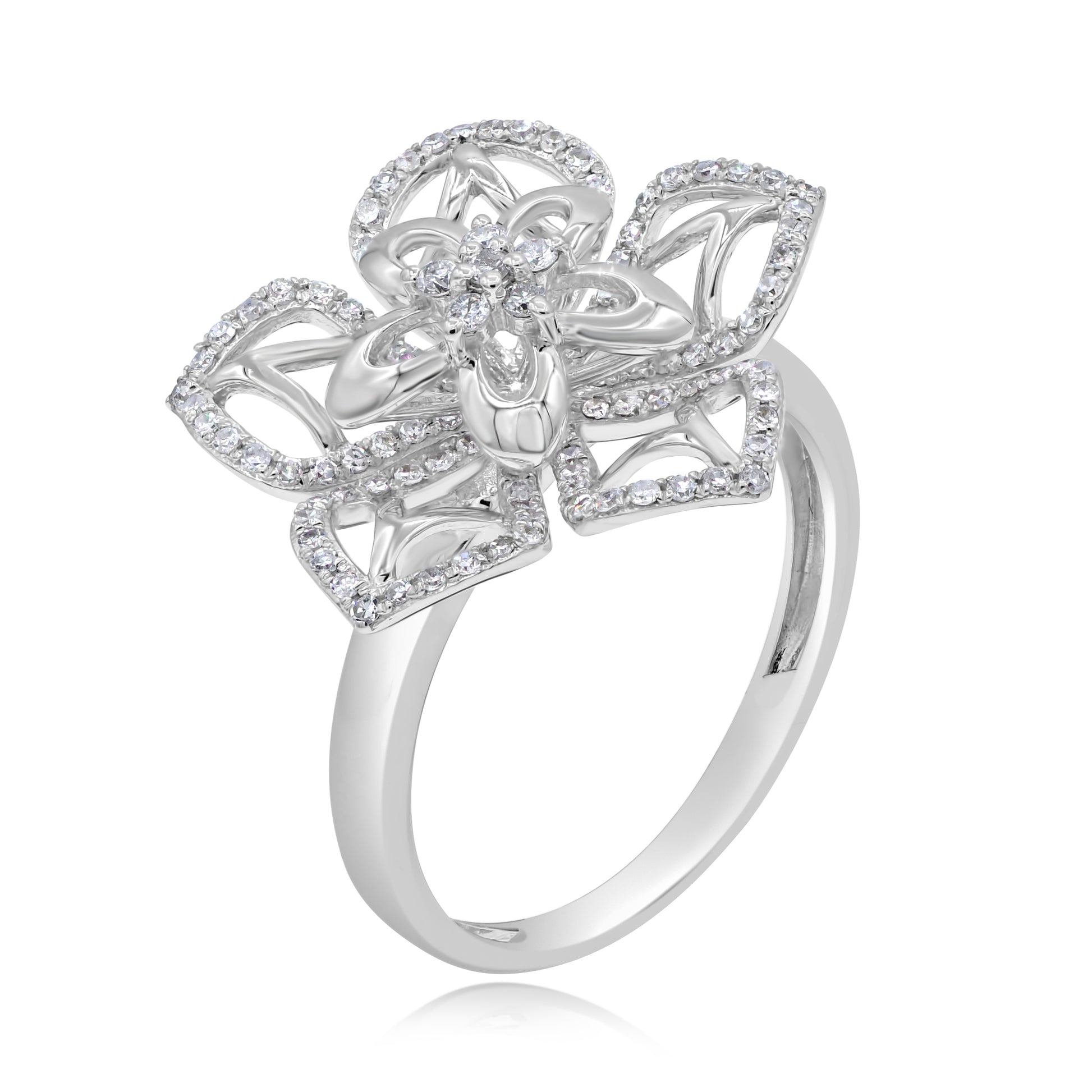 0.36 ct. Diamond 14K White Gold Open Floral Motif Statement Ring