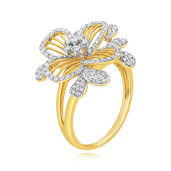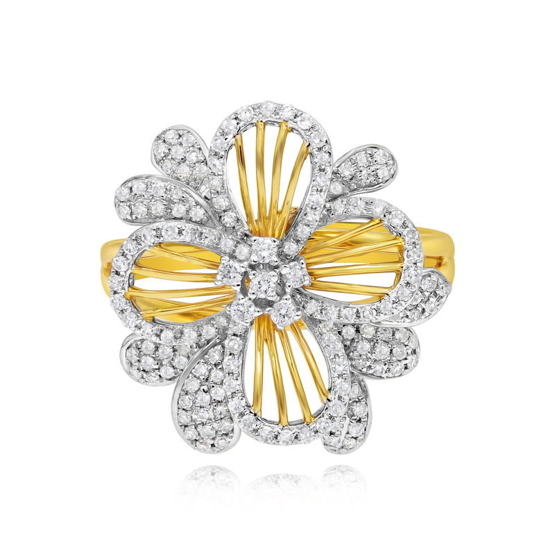 0.51 ct. Diamond 14K Two Tone Gold Clematis Flower Split Shank Ring