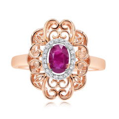 0.58 ct. Ruby & 0.08 ct. Diamond 14K Rose Gold Vintage Style Ring