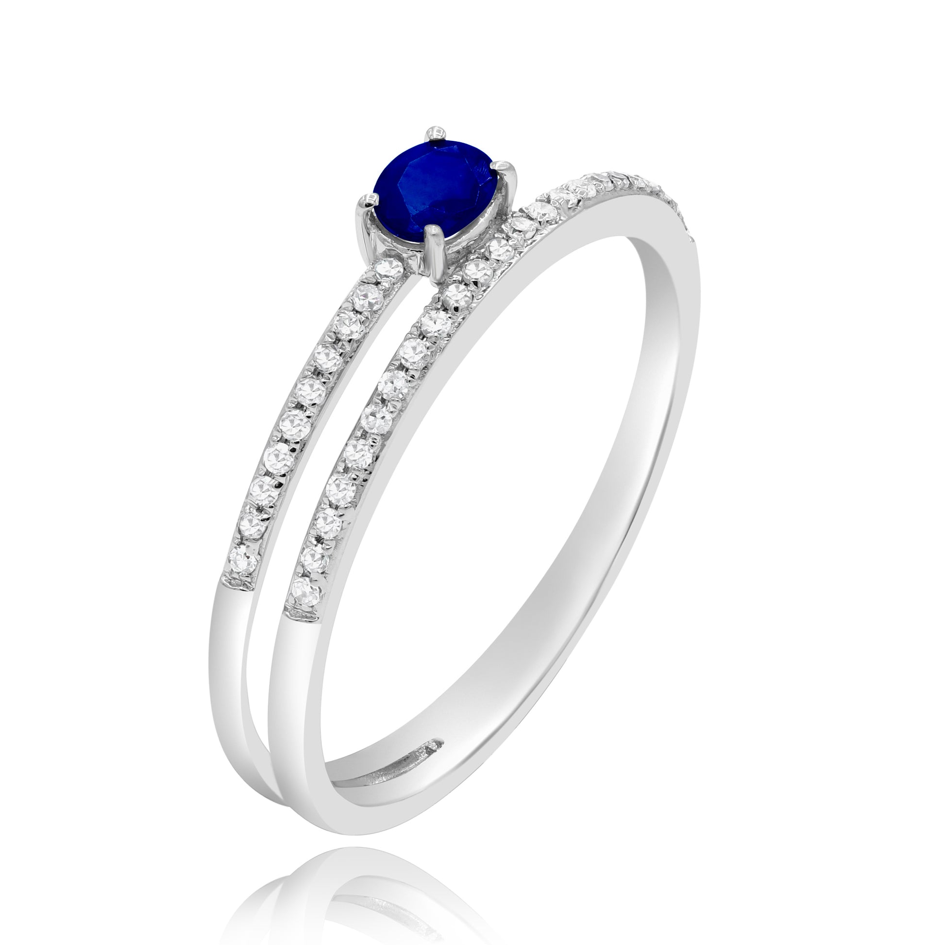 0.27 ct. Sapphire & 0.1 ct. Diamond 14K White Gold Asymmetrical Ring