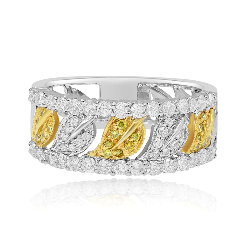 0.81 ct. Yellow & White Diamond 18K Two Tone Gold Leaf & Filigree Ring