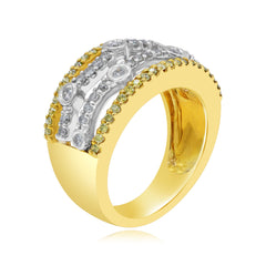 0.95 ct. Yellow & White Diamond 14K Two Tone Gold Multi-Row Band