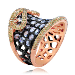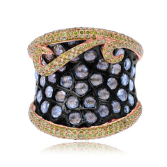 1.48 ct. Yellow Diamond & 2.56 ct. Rose Cut Diamond 18K Rose Gold Statement Ring