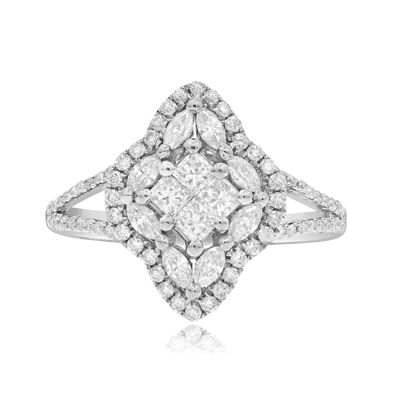 Gemstone 1: Diamond (Quantity: 80, Shape & Cutting Style: Marquise, Weight: 1.09 ct.) Gemstone 2: Diamond (Quantity: 80, Shape & Cutting Style: Princess, Weight: 1.09 ct.)RB459A