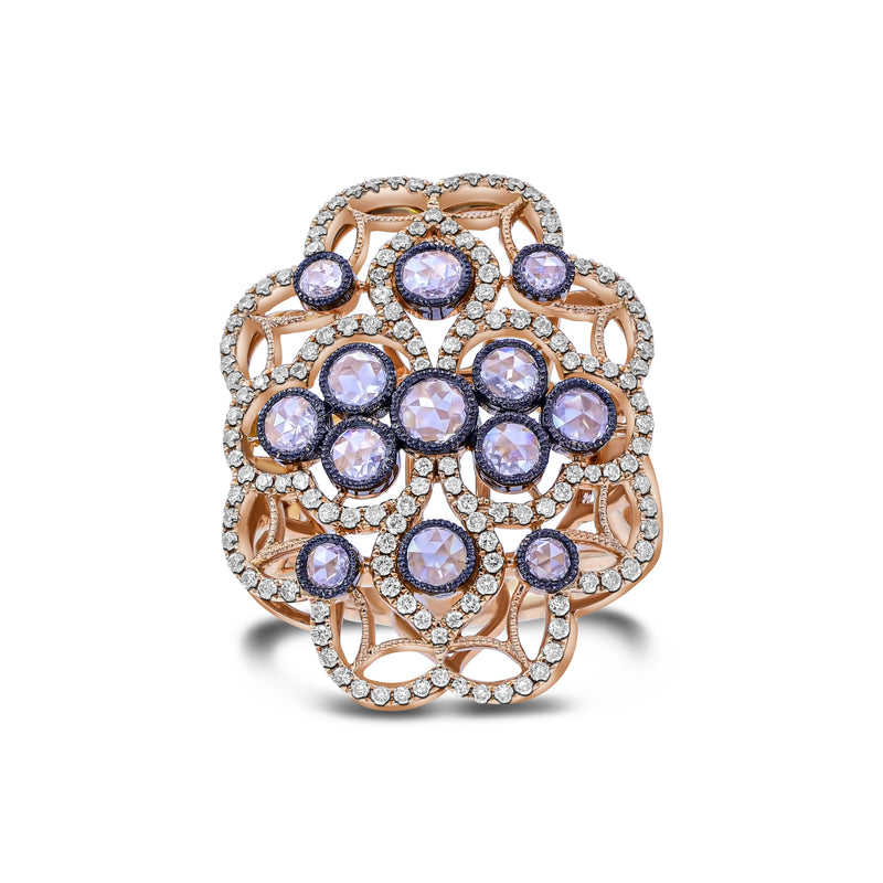 0.93 ct. Rose Diamond & 0.72 ct. Diamond 18K Rose Gold Filgree Ring