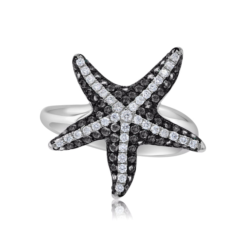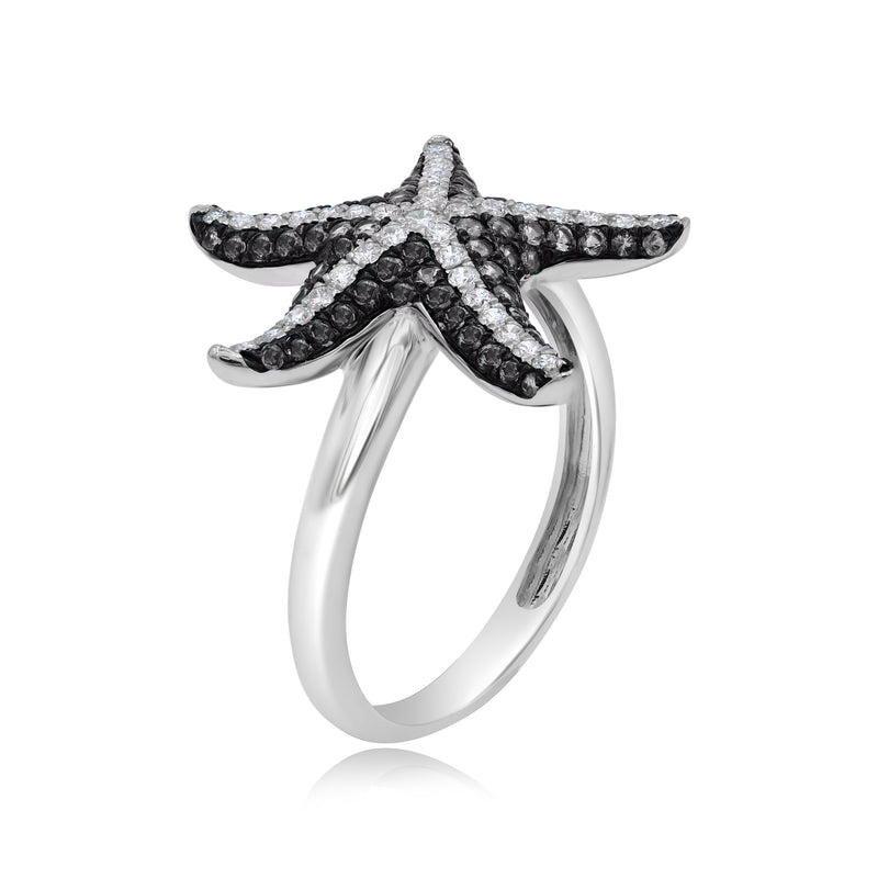 0.78 ct. Black & White Diamond 14K White Gold Starfish Ring