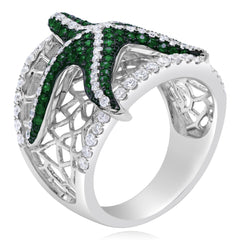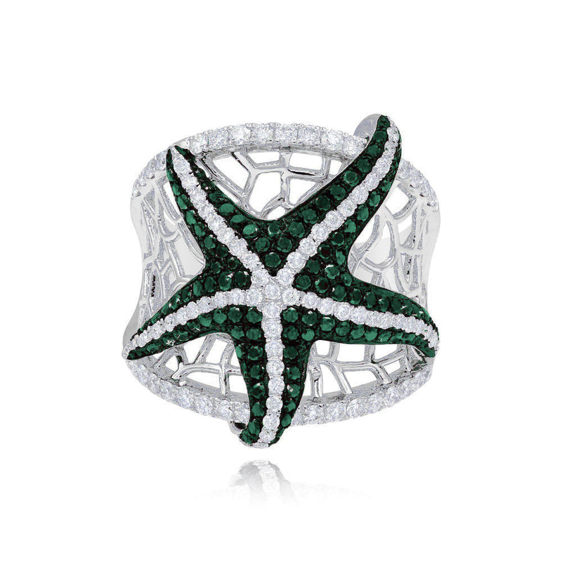 0.54 ct. Emerald & 0.87 ct. Diamond 14K White Gold Starfish Wide Mesh Ring