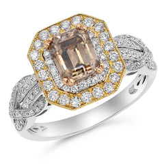 1.33 ct. Brown Diamond & 0.65 ct. Diamond 18K Two Tone Gold Twisted Split Shank Halo Ring