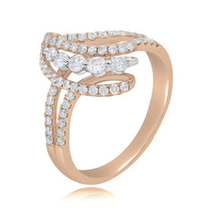 0.66 ct. Diamond 18K Two Tone Gold 3D Classic Criss Cross Leaf Ring