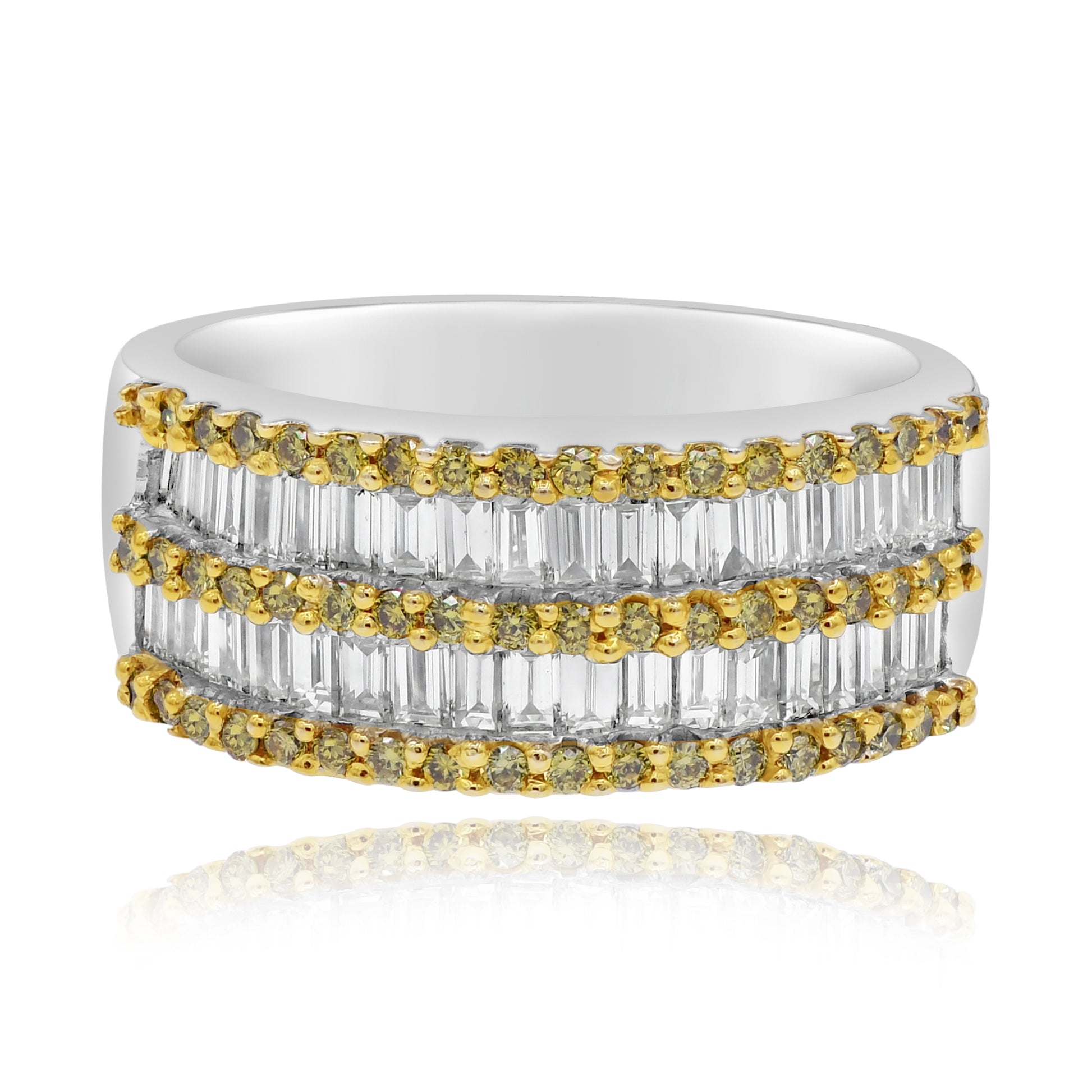 0.4 ct. Yellow Diamond & 1.55 ct. Diamond 18K White Gold Multi-Row Band