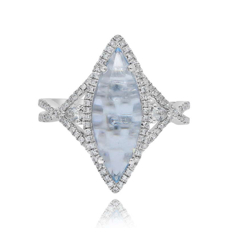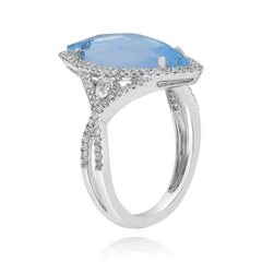 3.15 ct. Blue Topaz, 0.11 ct. White Topaz & 0.3 ct. Diamond 14K White Gold Twisted Split Shank Ring
