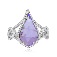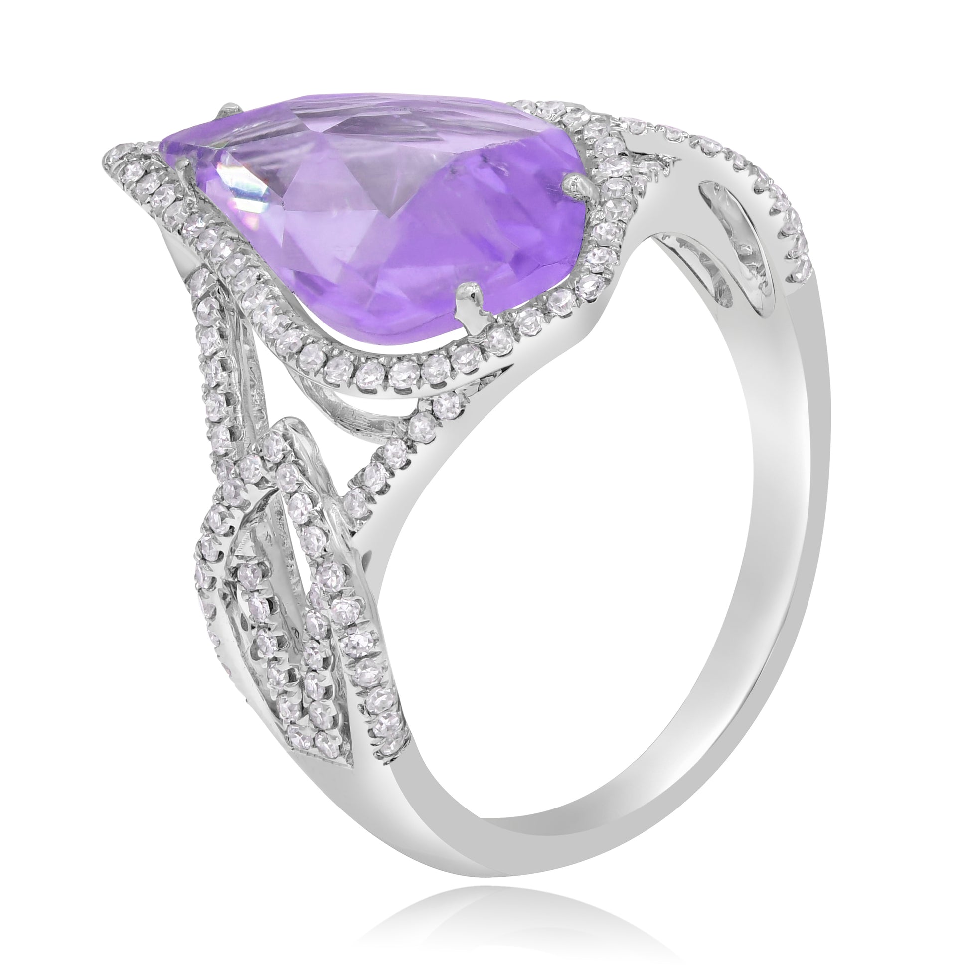 2.65 ct. Amethyst & 0.4 ct. Diamond 14K White Gold Teardrop Twisted Split Shank Ring