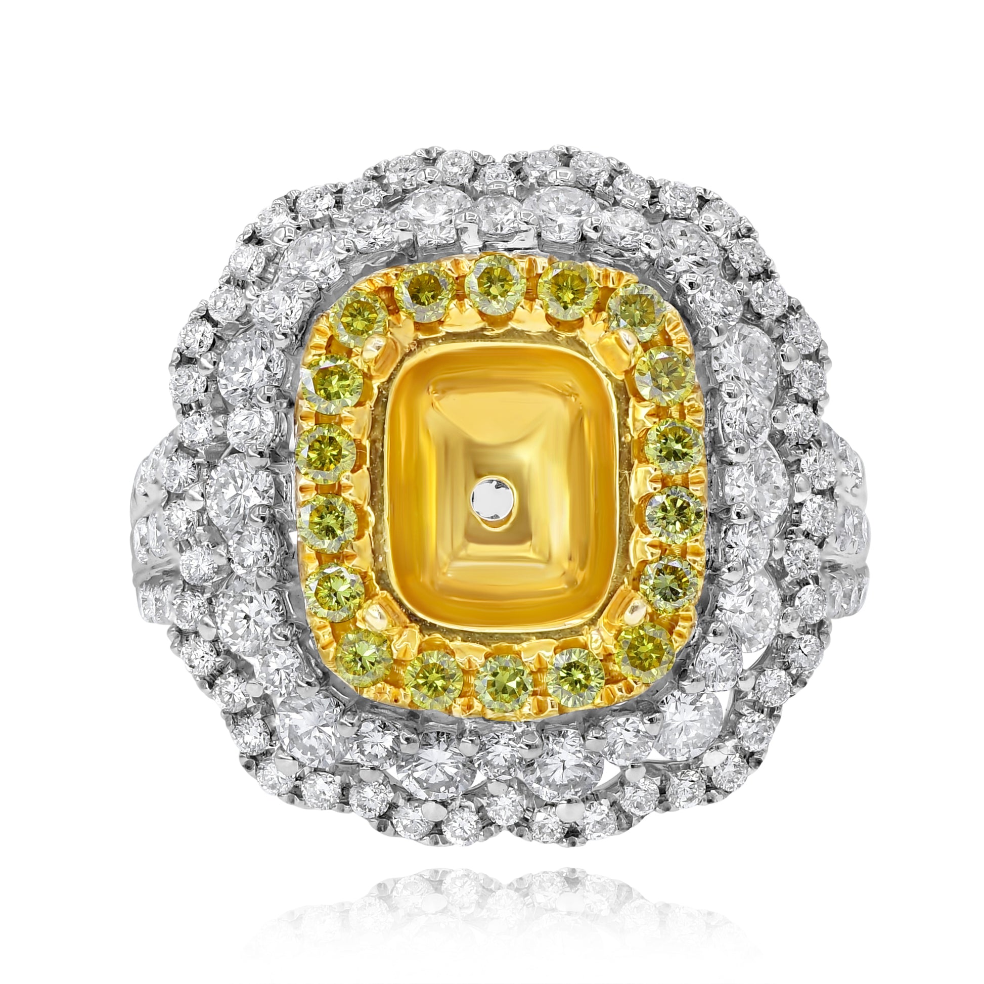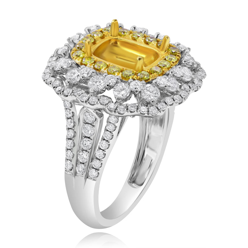 1.86 ct. Yellow & White Diamond 18K Two Tone Gold Statement Ring Mounting