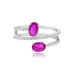 1.15 ct. Ruby & 0.21 ct. Diamond 14K White Gold Mutli Row Bypass Promise Ring