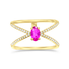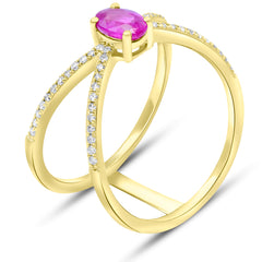 0.64 ct. Ruby & 0.22 ct. Diamond 14K Yellow Gold Crisscross Pave Double Band