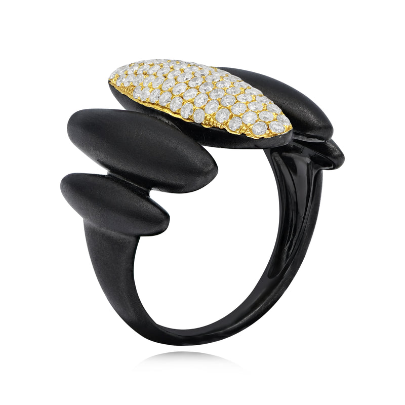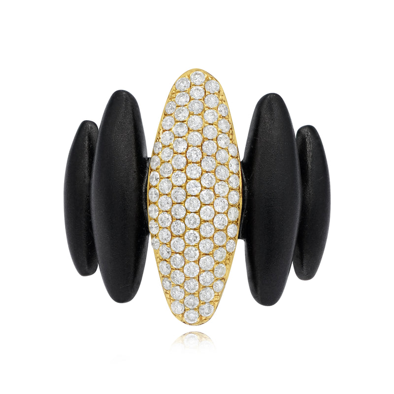 0.6 ct. Diamond 14K Two Tone Gold Sand Finish Black Rhodium Oval Links Statement Ring