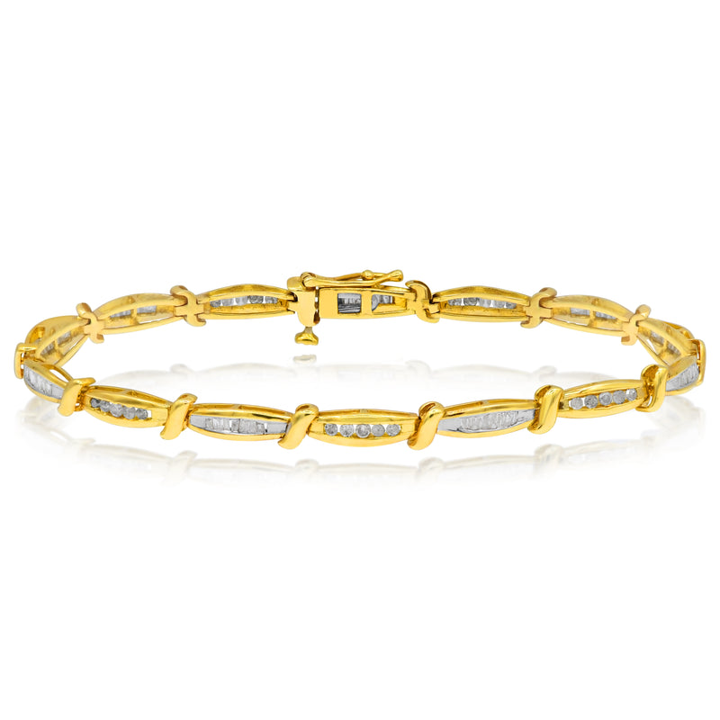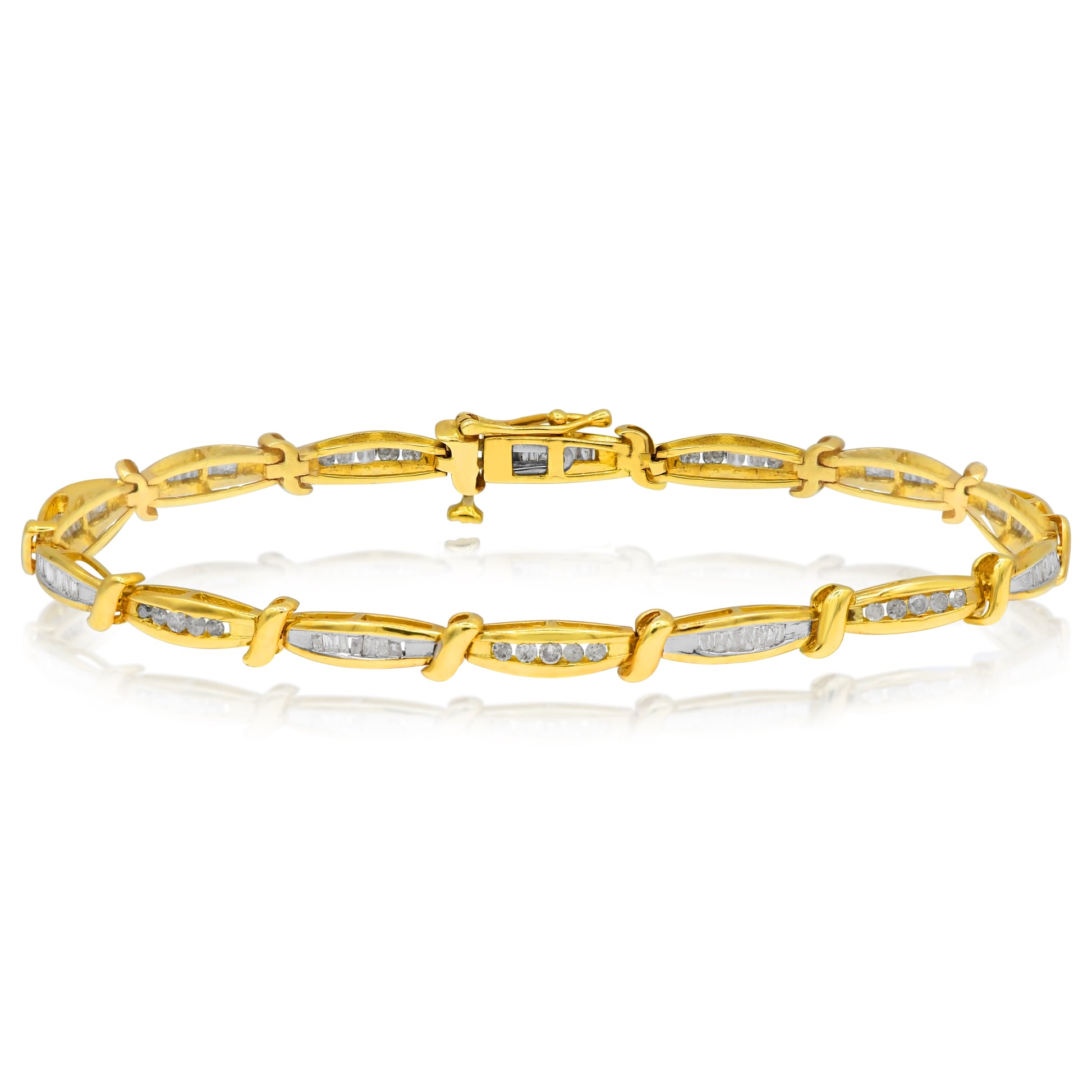 1 ct. Diamond 10K Yellow Gold Baguette Link Tennis Bracelet