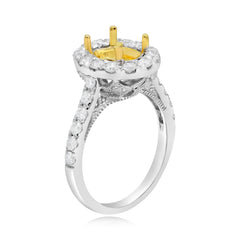 1.15 ct. Diamond 18K Two Tone Gold Oval Halo Pave Shank Ring Mounting