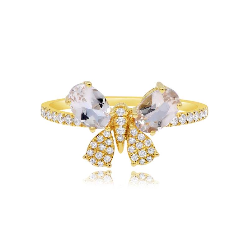 0.92 ct. Morganite & 0.24 ct. Diamond 14K Yellow Gold Butterfly Ring