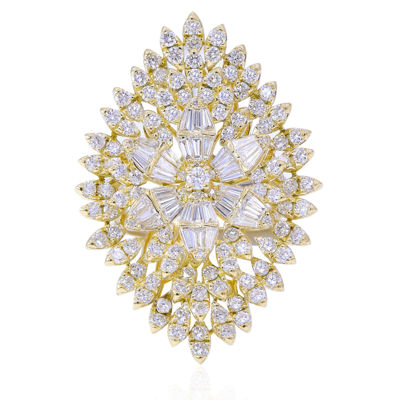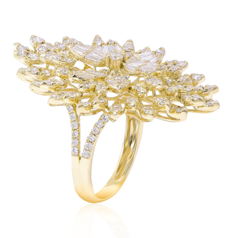 3.16 ct. Diamond 18K Yellow Gold Floral Ring