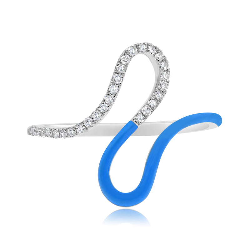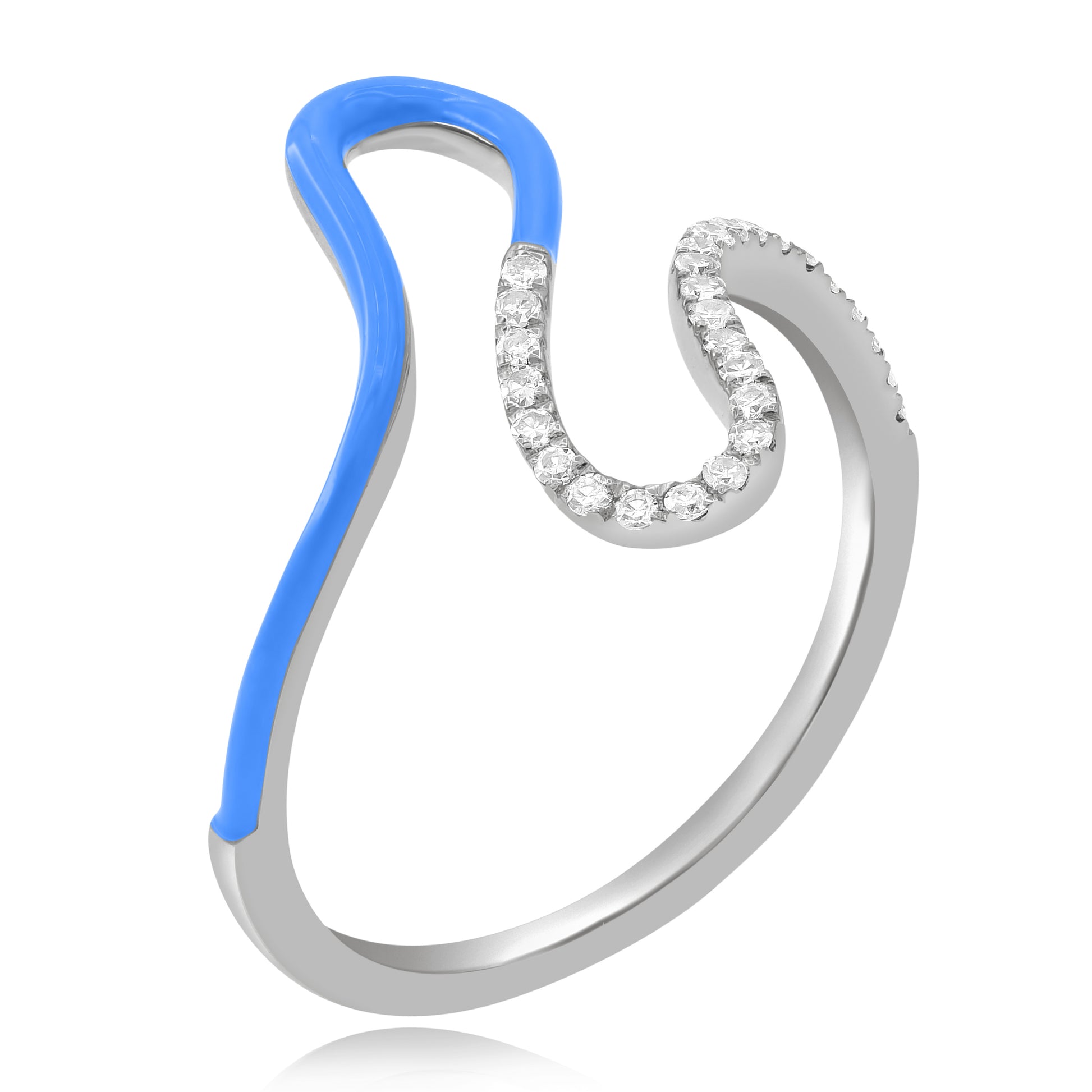 0.15 ct. Diamond 14K White Gold Blue Enamel Wave Ring