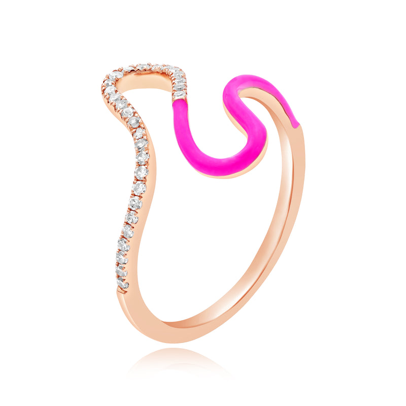 0.15 ct. Diamond 14K Rose Gold Pink Enamel Wave Ring
