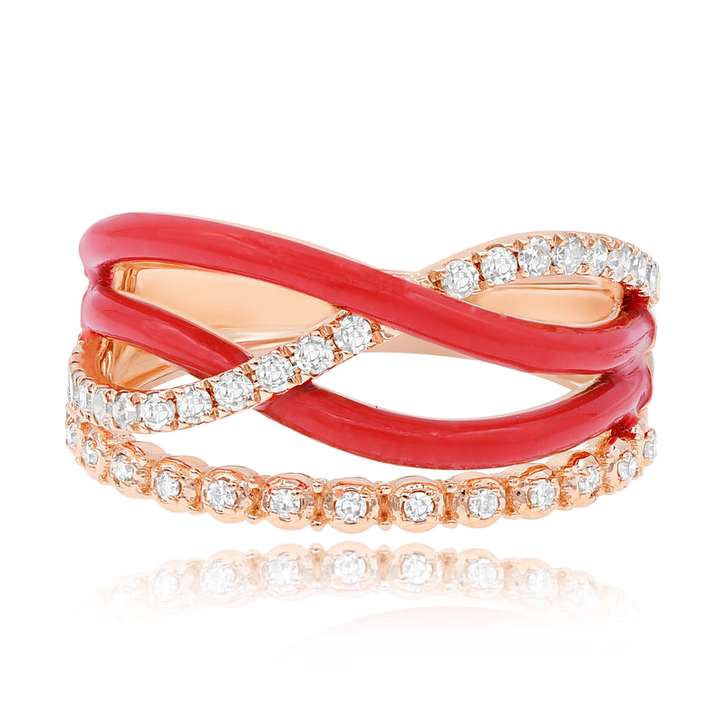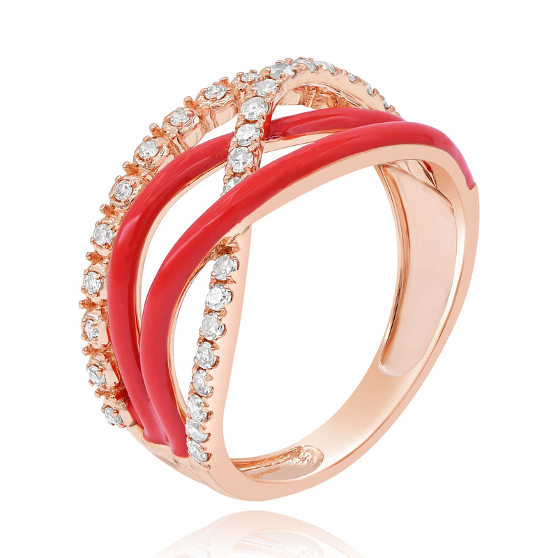 0.3 ct. Diamond 14K Rose Gold Red Enamel Crisscross Wave Ring