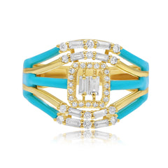 0.48 ct. Diamond 14K Yellow Gold Turquoise Enamel Multi-Row Open Shank Ring