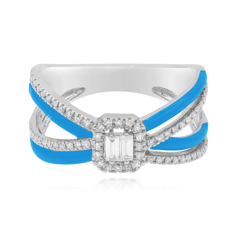 0.26 ct. Diamond 14K White Gold Blue Enamel Crisscross Open Shank Ring