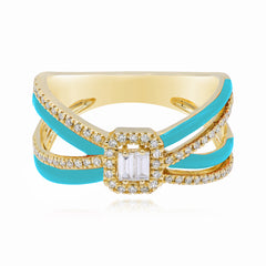0.25 ct. Diamond 14K Yellow Gold Turquoise Enamel Crisscross Open Shank Ring