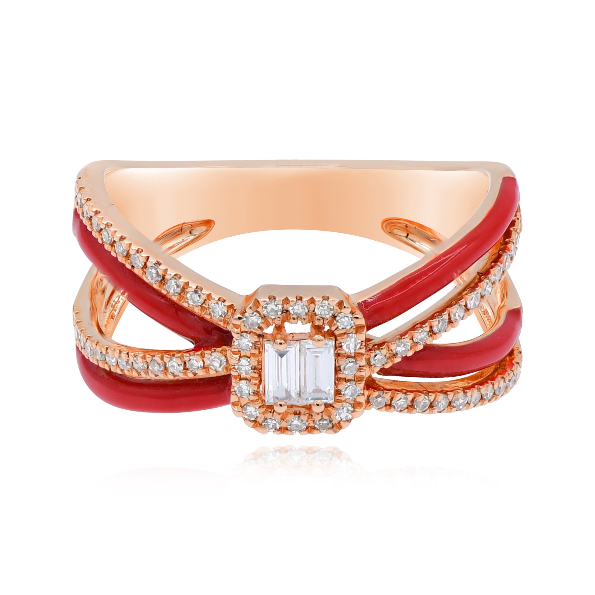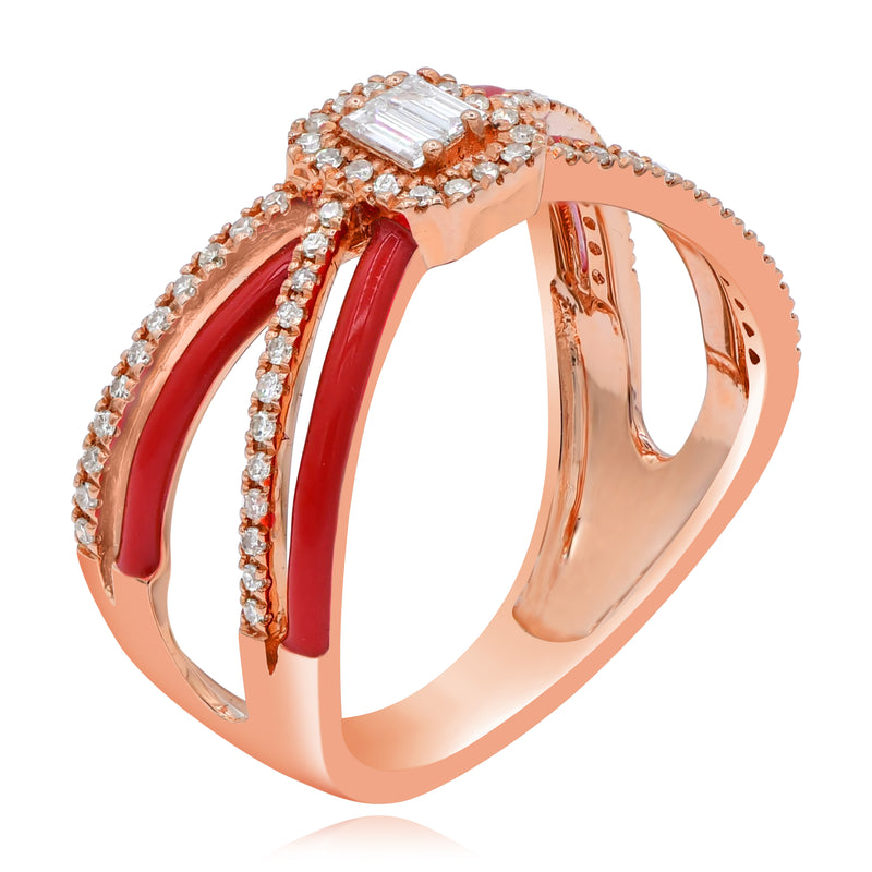 0.27 ct. Diamond 14K Rose Gold Red Enamel Crisscross Open Shank Ring
