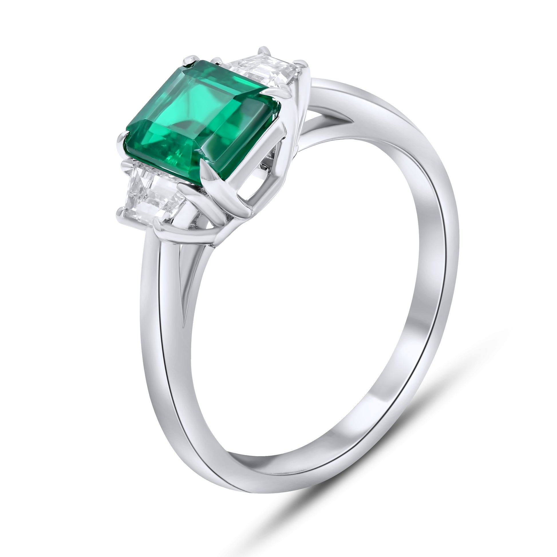 1.27 ct. Emerald & 0.31 ct. Diamond 18K White Gold Engagement Ring