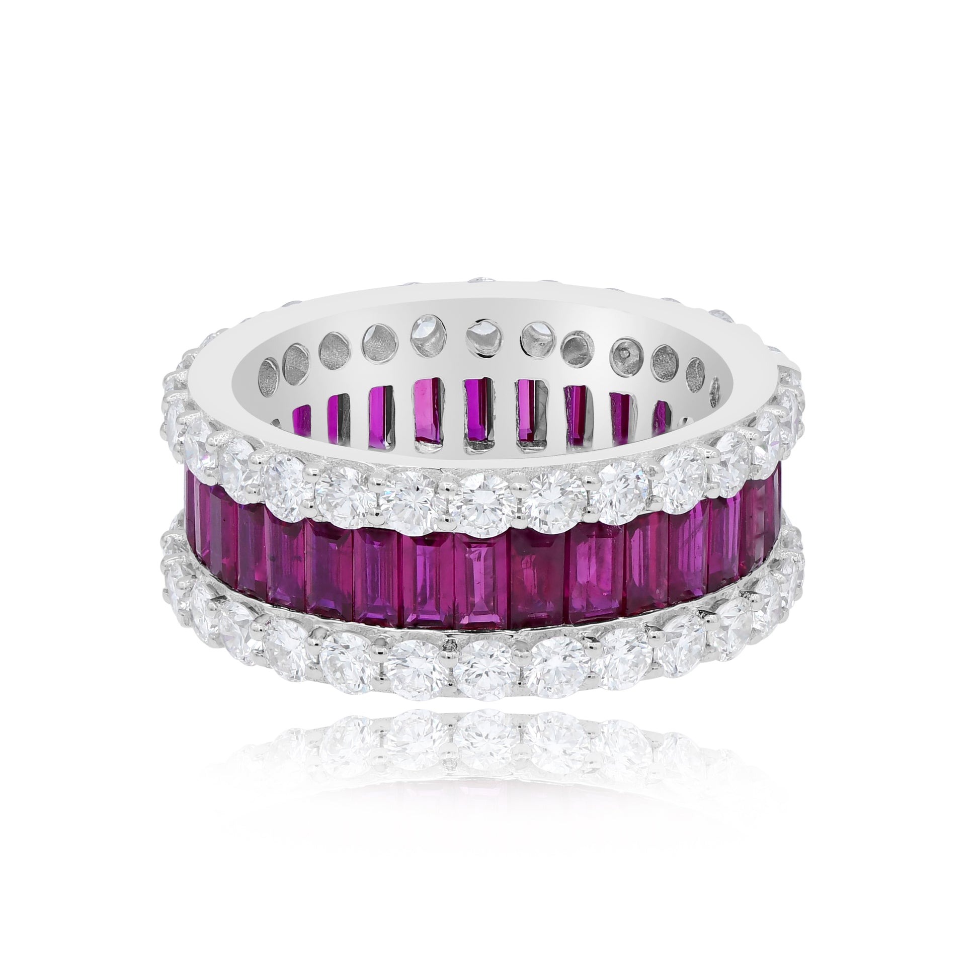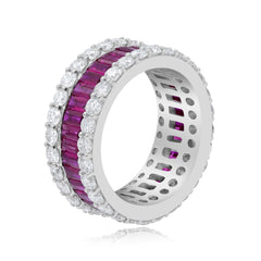 4.11 ct. Ruby & 3.15 ct. Diamond 18K White Gold Triple Rows Eternity Band