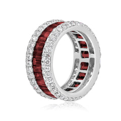 4.76 ct. Ruby & 2.61 ct. Diamond 18K White Gold Triple Row Eternity Band