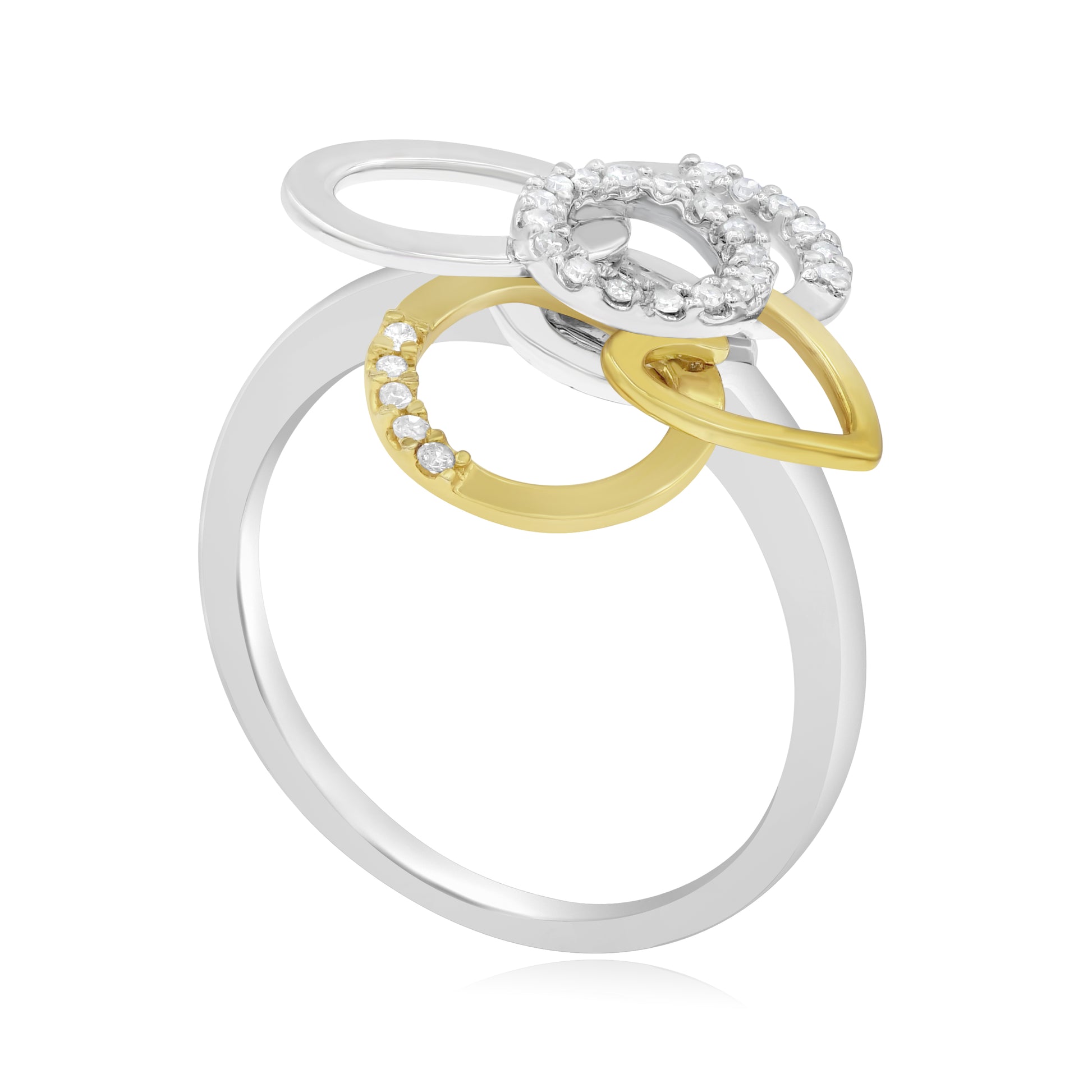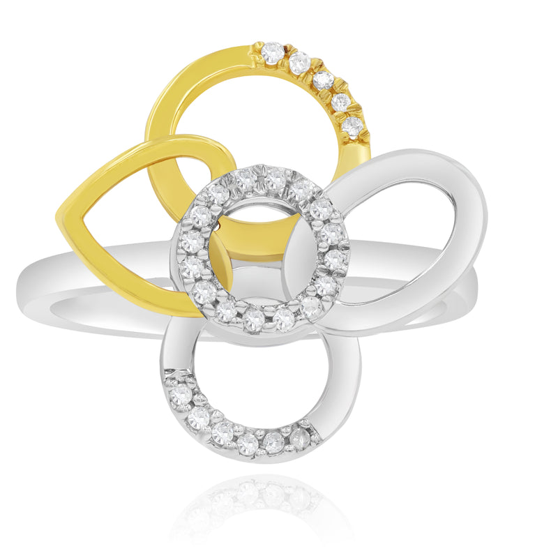 0.21 ct. Diamond 14K Two Tone Gold Open Lotus Motif Statement Ring