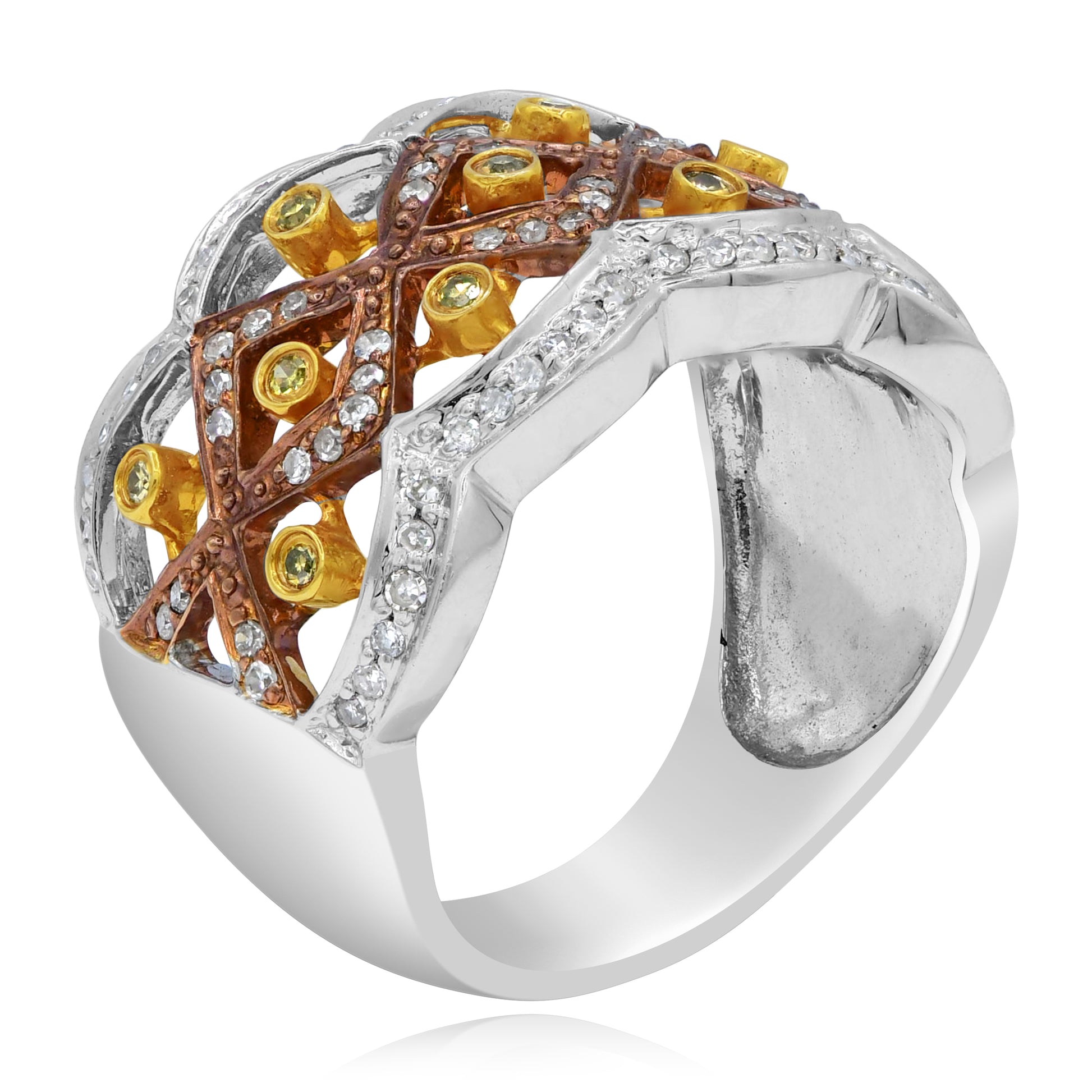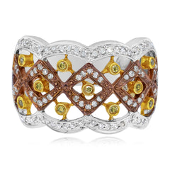 0.42 ct. Yellow & White Diamond 14K Three-Tone Gold Openwork Wide Band