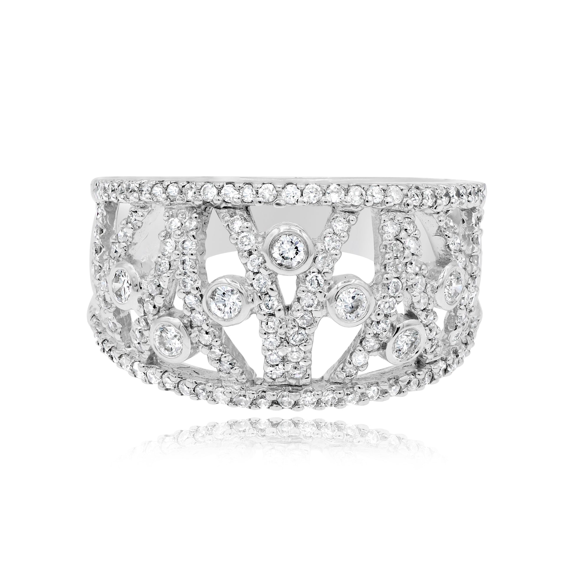 0.73 ct. Diamond 14K White Gold Openwork Wide Filigree Ring