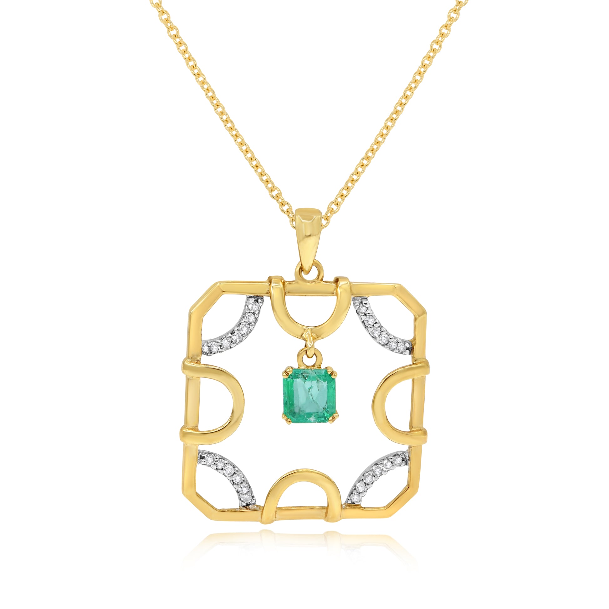 0.28 ct. Emerald & 0.1 ct. Diamond 14K Yellow Gold Beveled Square Floating Pendant